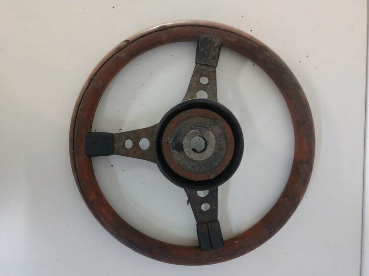 VOLANTE ANTIGO DE MADEIRA ( ESTA TRINCADO ) NO ESTADO